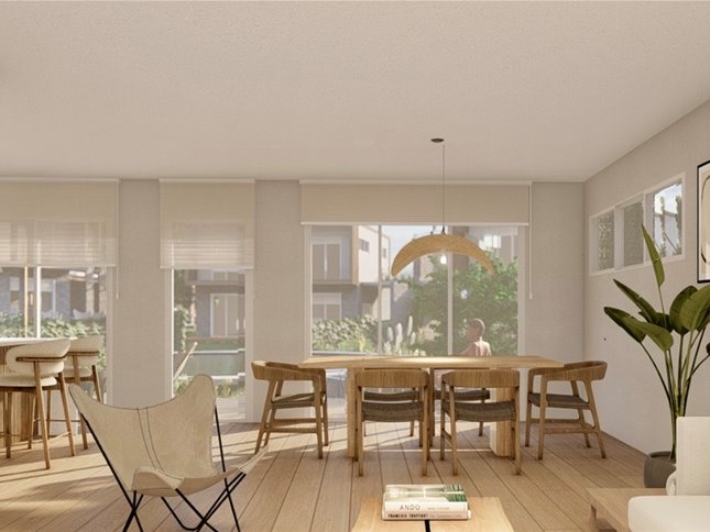 Casa de construcción tradicional, en complejo de 6 casas dúplex con piscina en común.