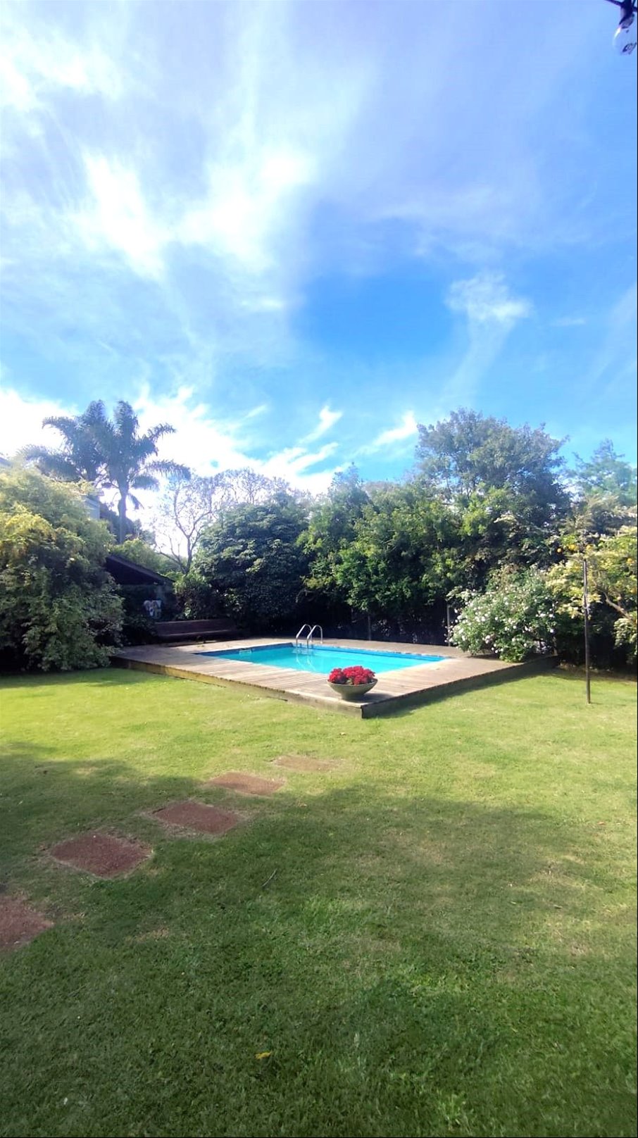 Cuenta con 4 dormitorios (uno de ellos en suite), 4 baños en total en la casa, piscina, parrillero con baño, riego automático HUNTER, aberturas aluminio linea Gala doble vidrio