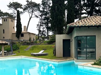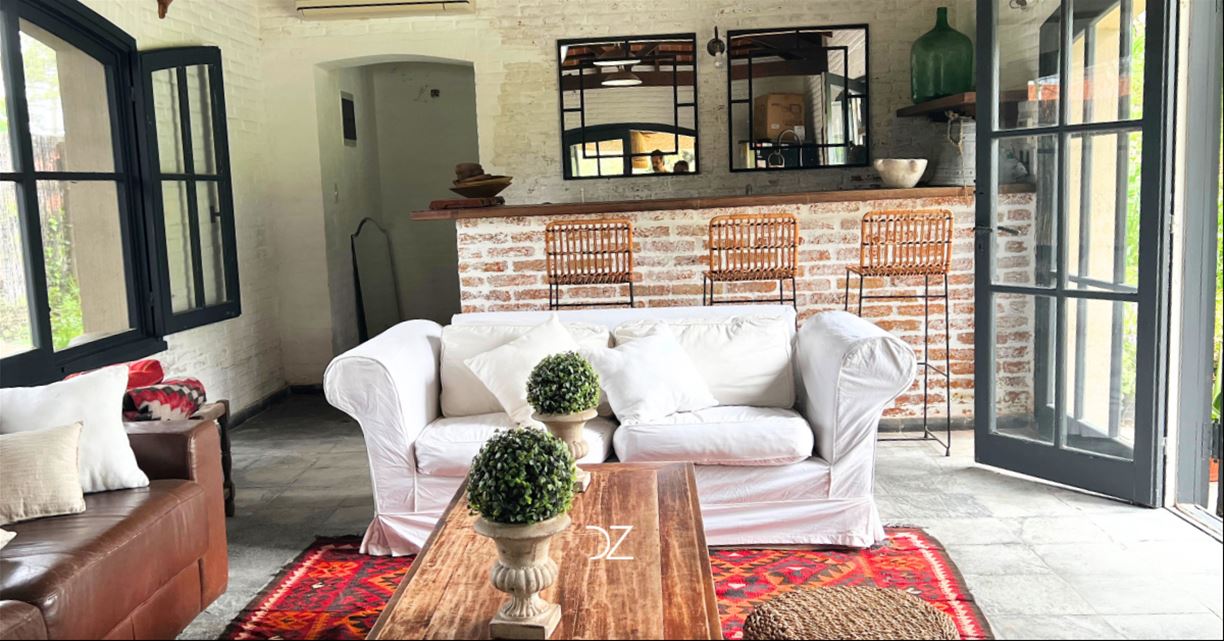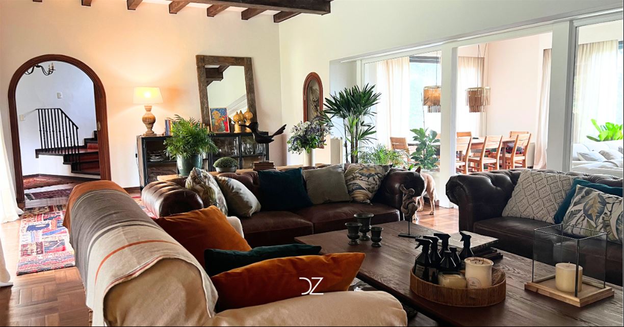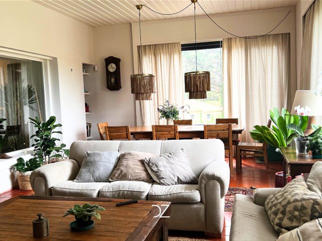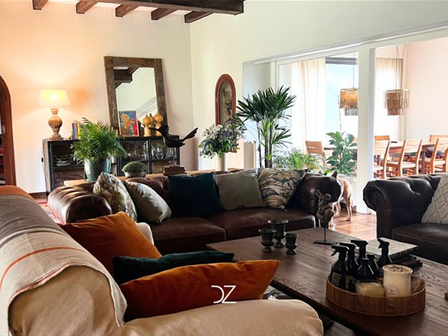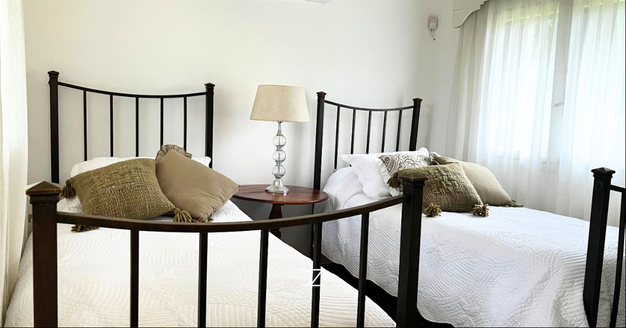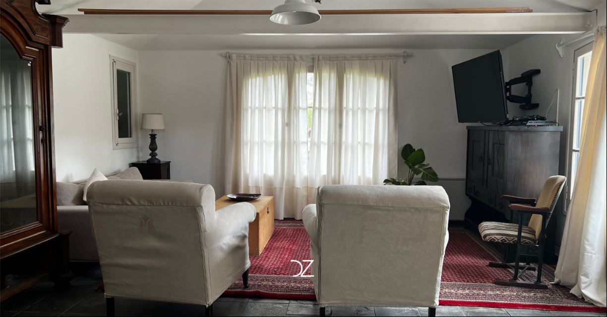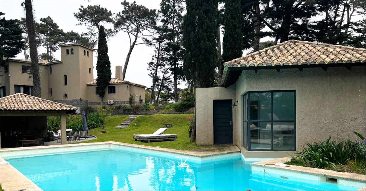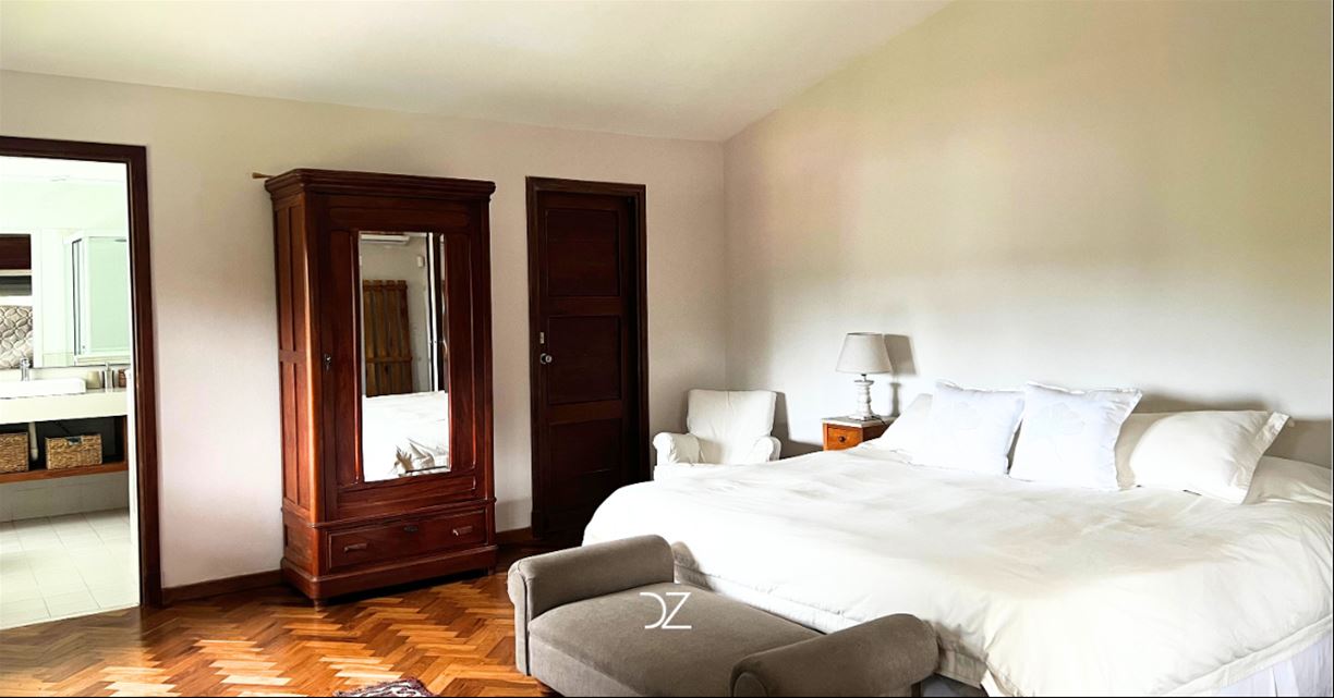 La casa principal tiene 4 dormitorios (2 son en suite) y 4 baños, la casa de huespedes de 2 dormitorios con baño