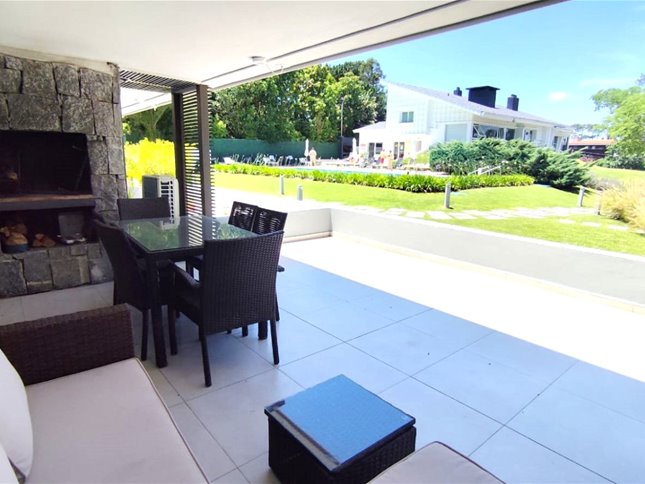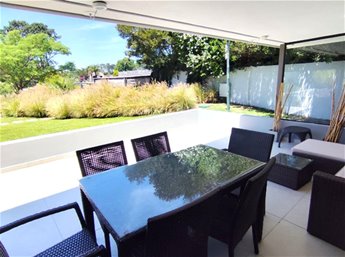 El departamento que es en planta baja, tiene una terraza de uso exclusivo, amplia con parrillero propio, garaje cerrado para un auto..